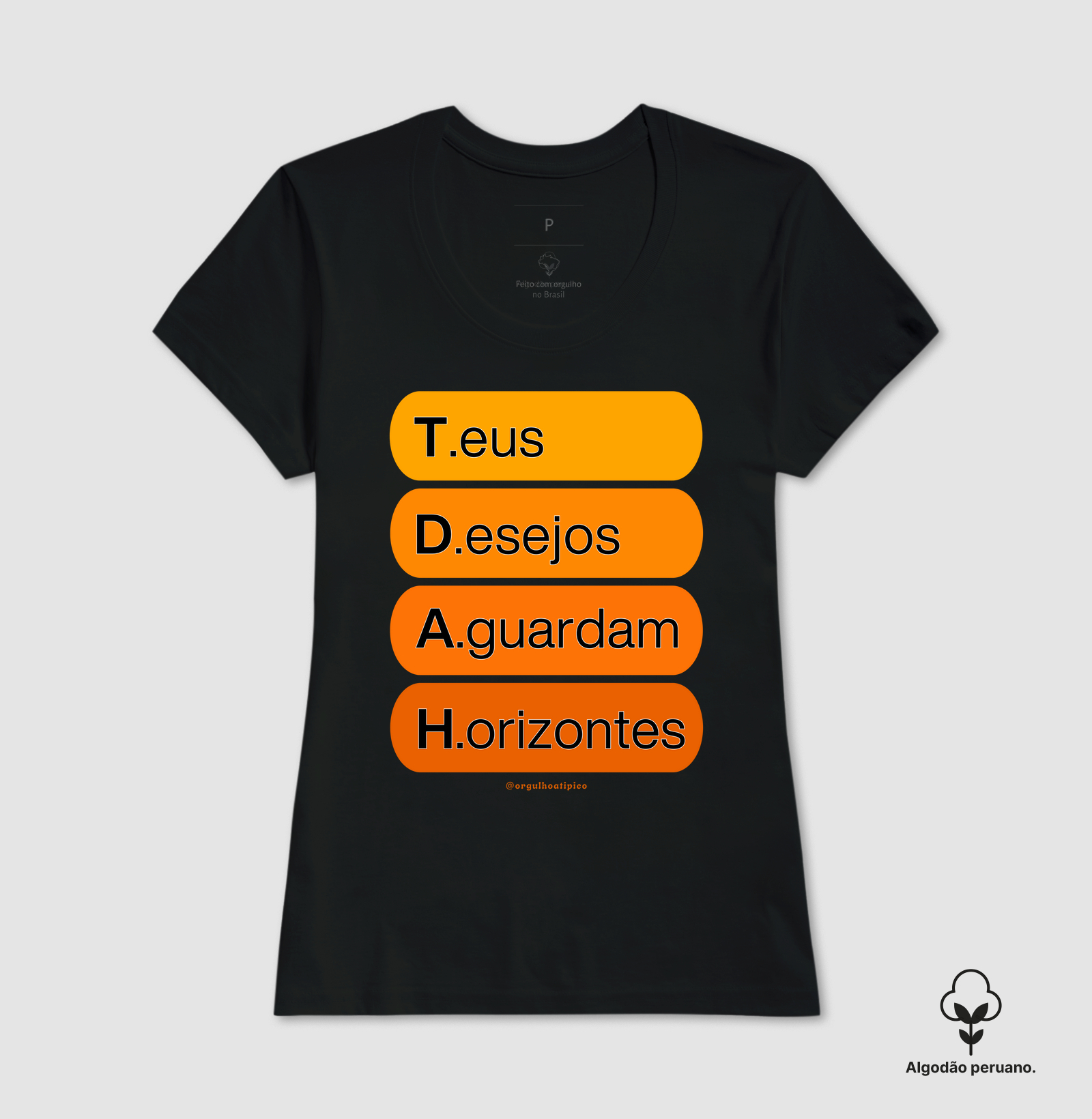 A camiseta Teus Desejos Aguardam Horizontes representa a união, o respeito e a força das famílias atípicas. Feita em algodão 100%, proporciona máximo conforto e um toque suave para o dia a dia. Seu design exclusivo celebra a inclusão e reforça que, quando nos apoiamos, criamos um mundo mais acolhedor. Vista essa mensagem e espalhe empatia! 💙💛💜💚 #OrgulhoAtípico